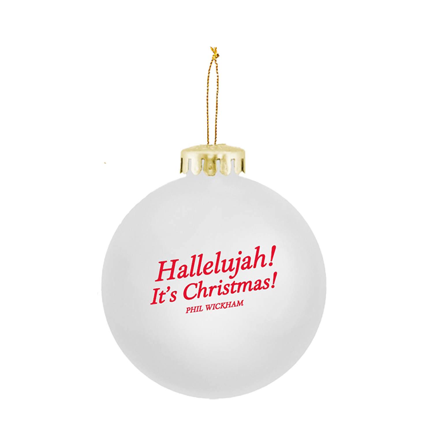 A frosted white, medium sized, glass bulb ornament with unique artwork for the "Hallelujah! It's Christmas!" album.